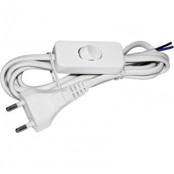 Шнур IEK УШ-1КВ опрессованный с вилкой со встроенным выключателем 2х0,75/2м белый - WUP20-02-K01