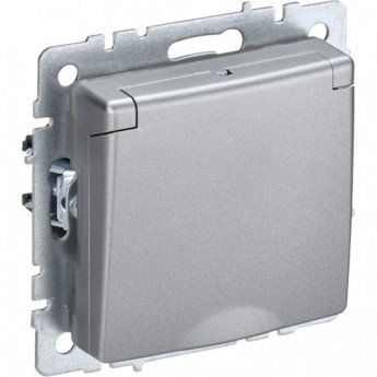 Розетка 1-местная с заземлением с защитными шторками и крышкой 16А IP20 РСбш10-3-БрА алюминий IEK BRITE BR-R16-16-K47